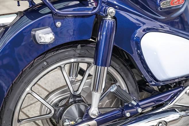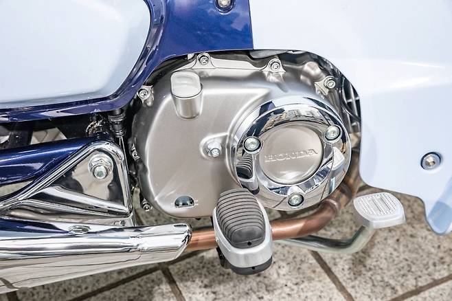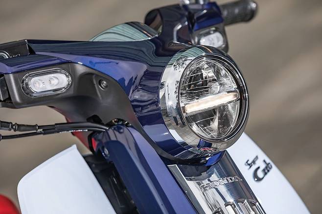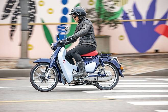 반면 라이딩 포지션은 컴팩트하다. 의자에 앉아서 양손을 무릎 위로 뻗는 자세로 아마 초기 라이딩 포지션을 복각한 듯하다. 무게 중심이 잘 맞아떨어져서 바이크가 움직이기 시작하면 편안하게 주행할 수 있었다. 시동을 걸면 125 엔진의 낮고 귀엽게 작고 도톰한 엔진음이 퍼진다. 박력 있으면서도 진지하지 않은 느낌이랄까. 속도가 붙어가며 얼굴에 미소가 번진다. C125는 프리미엄 125cc 클래스에 맞게 완전히 새로운 엔진을 채용했다. 그래서일까 엔진 필링은 꽤 풍부하면서도 명료하다. 125cc 엔진과 110cc 엔진의 차이는 고작 15cc이지만 결이 완전히 다르다.