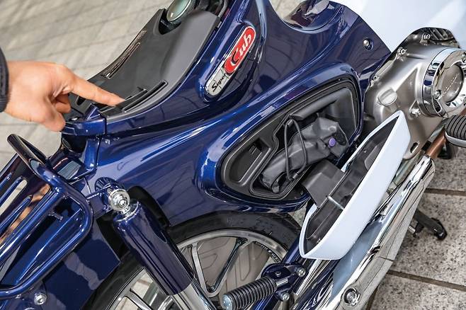밝고 산뜻한 레드 컬러 싱글 시트가 라이더를 반긴다. 마치 커브 세계에 온 것을 환영한다는 듯 말이다. 1958년에 C100을 처음 본 사람들이 느꼈을 법한 감정이 이런 것이지 않을까 하는 생각도 잠시 스쳤다. C125는 스마트키 시스템이 적용되었다. PCX125 등에서도 쓰이는 것과 같은 방식으로 라이더가 키를 가지고 있는 상태에서 다이얼을 돌려 조작한다. 시승하는 내내 편하게 시동을 켜고 끌 수 있었는데 개인적으로 좋았던 것은 앤서-백 answer-back 기능이다. 시동을 끈 후 라이더가 멀어지면 바이크가 삑삑 비프음을 내며 턴 시그널 램프를 깜빡하는 것이 바이크와 교감하는 느낌이다.