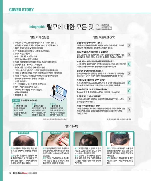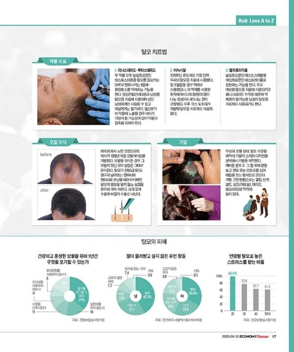 ‘이코노미조선’은 탈모인들이 과학적이고 올바른 치료를 지속하며 탈모를 극복하는 데 도움을 주기 위해 이번 커버 스토리를 기획했다. 탈모약부터 모발이식, 가발, 의약외품, 미래의 탈모 연구 전망까지 그야말로 A부터 Z까지 모든 것을 담았다.