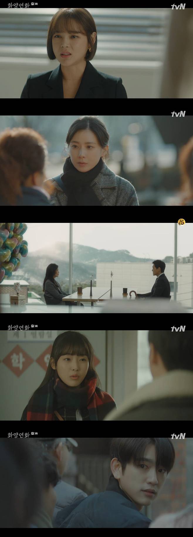 2일 방송된 tvN 드라마 '화양연화'에서는 한재현(유지태 분)과 윤지수(이보영 분), 장서경(박시연 분)의 삼자대면이 그려졌다.