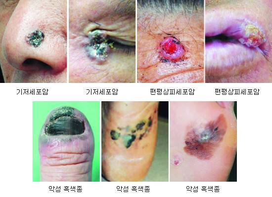 송기훈 국립암센터 피부과 전문의는 1일 “보통 점과 생김새가 다르거나 없던 점이 새로 생겨 시간이 지날수록 색깔이 짙어지고 짓무르고 헐고 크기가 커지거나 출혈·가피(딱지) 형성 같은 표면 상태의 변화를 보이거나 기존 점과 인접해 새로이 작은 점들이 생기는 경우 피부암을 의심할 수 있다”고 설명했다. 피부암은 조기 발견으로 치료가 빨리 이루어지면 예후가 좋을 뿐 아니라 대부분 일상생활에 크게 지장을 받지않는다.