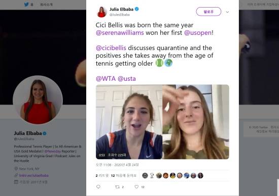 캐서린 벨리스(미국, 304위)는 4월 24일 미국 테니스 선수이자 리포터로 활동하고 있는 줄리아 엘바마의 팟캐스트를 통해 자신의 근황을 전했다.