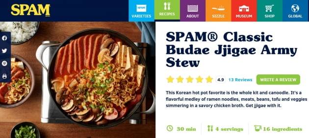 ○스팸 본사 홈페이지에 '아미 스튜' 등장