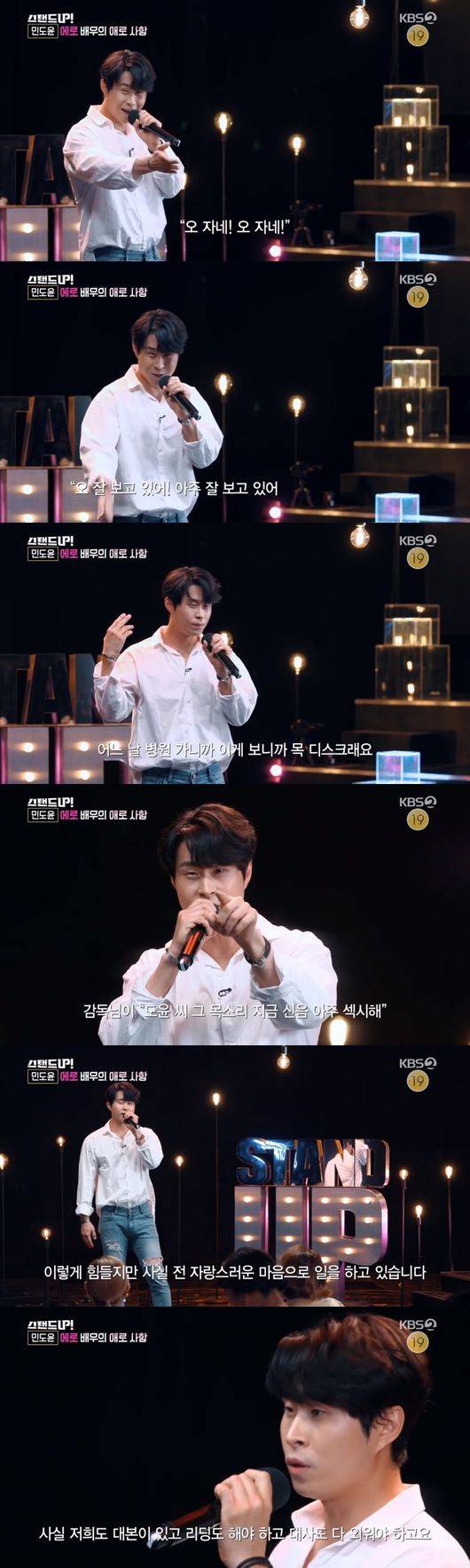 19일에 방송된 KBS2TV '스탠드UP!'에서는 에로배우 민도윤이 출연해 그동안 공개하지 못한 입담을 과시해 눈길을 사로 잡았다.
