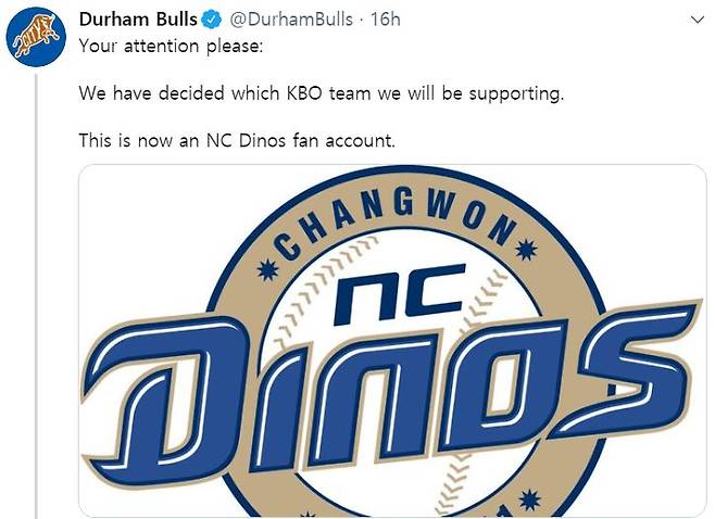 노스캐롤라이나에 소재한 탬파베이 산하 마이너리그팀 더램 불스는 아예 "우리는 이제 NC 다이노스를 응원한다"고 못 박았다. 한 팬이 "무슨 이유냐"고 묻자 더램 구단 트위터 관리자는 "우리는 모든 NC(노스캐롤라이나) 팀을 사랑하니까"라고 답했다.