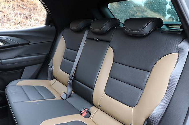 리어 시트는 60 : 40 분할 접이식. 공간 면에서 역시 셀토스와 비교될 수밖에 없다. 차체의 크기 중 실내공간과 직접적인 관계가 있는 휠 베이스가 트레일블레이저는 2,640mm, 셀토스가 2,630mm로 미세하게 차이가 난다. 그만큼 한국GM이 이 등급에서 무엇을 중시했는지를 보여 주는 내용이다. 물론 종합적인 패키징 역량에 의해 공간의 활용도가 달라지지만, 오늘날 소비자들이 세단보다는 SUV를 선호하는 것이 실용성이라는 점을 고려하면 중요한 경쟁 포인트인 것은 분명하다. 트렁크 적재용량은 기본이 460ℓ로 셀토스의 498ℓ보다 약간 작다.