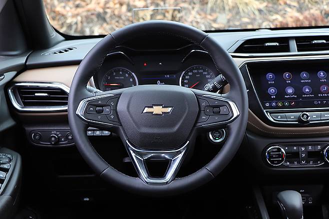트레일블레이저는 스티어링 휠 뒤의 계기판은 아날로그 타입이고 센터패시아는 터치스크린 타입으로 풀 디지털은 아니다. 아직은 가격도 문제이지만 소프트웨어 플랫폼이 완성되지 않았다는 얘기이기도 하다. 시승차는 애플 카플레이가 USB 케이블이 아닌 블루투스로 연결된다. 안드로이드 오토는 아직 무선 연결이 되지 않는다. 지금 자동차회사들은 30~70개 가량에 이르는 ECU를 3~5개로 통합하는 작업을 하고 있다. 완성되면 차급을 가리지 않고 다양한 디지털 기능을 사용할 수 있고 무선업데이트도 가능해진다.