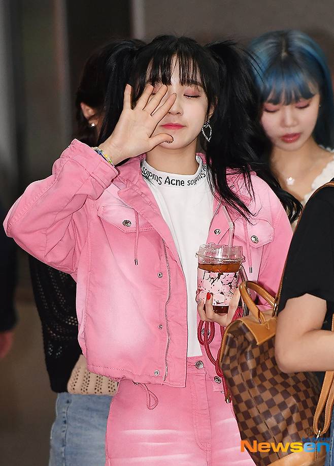 걸그룹 (여자)아이들 우기가 4월 27일 오후 MBC every1 주간아이돌 촬영을 위해 경기도 고양시 MBC 일산드림센터로 출근하고 있다.