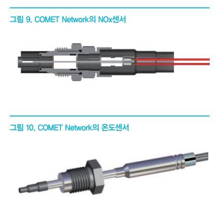 Turbo charger 전단에 장착되는 온도센서는 배기 연소 온도를 측정하여 DPF가 재생될 때, 연료량 및 분사시기를 조정하는데 활용된다. DPF 전/후단에 설치되는 온도센서는 DOC에서 미연소된 연료의 산화 시 발생되는 추가적인 열을 감지하여 DOC 동작 상태를 확인하는 역할과 DPF 재생시 온도를 모니터링하는 역할을 수행한다. SCR 전/후단에 설치되는 온도센서는 SCR 촉매의 온도를 모니터링하여 SCR의 온도를 제어한다. <그림 10>은 Turbo charger 전단에 장착되는 온도센서를 나타낸다.