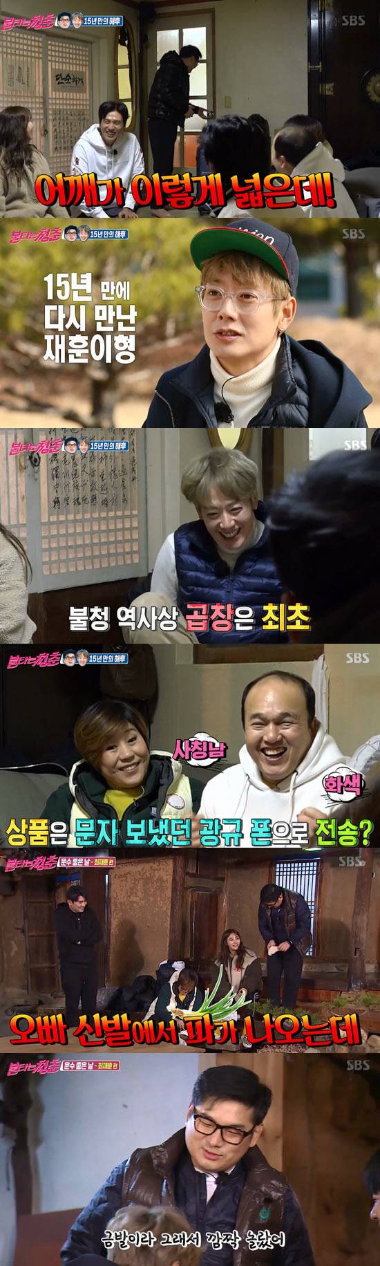 24일 방송된 SBS 예능 프로그램 '불타는 청춘'에서는 지난 주에 이어서 충북 옥천으로 여행을 떠난 청춘들의 모습이 그려졌다. 지난 주 방송 말미 새 친구로 합류한 김형준과 15년 절친 최재훈과의 재회가 눈길을 끈 바 있다. 김형준은 최재훈을 보고는 "10년 전까지 연락을 했는데 정말 오랜만이다. 형은 저를 보고 실망하셨을 수 있지만 저는 한 없이 반갑다"며 감동했다.