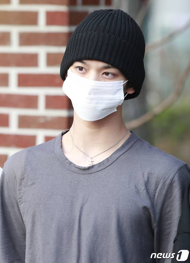 (서울=뉴스1) 권현진 기자 = 제21대 국회의원선거 사전 투표가 시작된 10일 오전 합정동 주민센터 사전투표소를 찾은 CIX 배진영이 투표 전 포즈를 취하고 있다. 2020.4.10/뉴스1