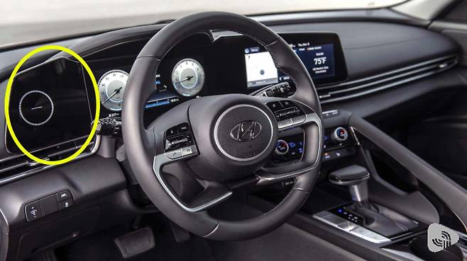 신형 아반떼의 상위 트림에는 최근 자동차 실내 디자인의 트렌드 중 하나인 계기판 일체형 인포테인먼트 스크린을 사용한다. 그런데 여기에서 다른 차량에서는 볼 수 없었던 부분이 계기판 왼쪽으로 연장돼 있는 것을 확인할 수 있다.