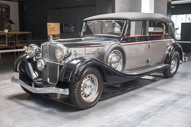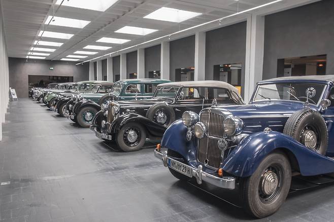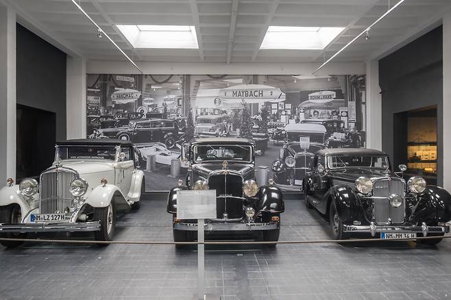 멋지게 복원된 체펠린 카브리올레를 보고 나면 접근을 막아놓은 중앙 전시 공간에 다다릅니다. 이곳에선 쭉 늘어선 10여 대의 마이바흐 SW 시리즈를 볼 수 있죠. 박물관의 하이라이트라 할 수 있습니다. 복원된 SW 시리즈들을 찬찬히 훑다 보면 짧았지만 화려했던 마이바흐 자동차의 전성기를 떠올리게 되고, 만약 전쟁이 일어나지 않았다면, 그래서 마이바흐가 계속 자동차를 생산했다면 어땠을까 하는 생각에까지 이르게 됩니다.