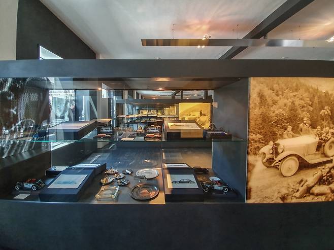 붉은색 DSH 뒤로는 정말 다양한, 그리고 소소한 마이바흐와 관련한 서류나 사진 자료 등이 전시돼 있습니다. 뿐만 아니라 시거, 라이타, 재떨이, 시계 등 마이바흐 이름이 새겨진 다양한 당시 제품들도 함께 전시돼 있습니다. 브랜드가 너무 이곳저곳 막 사용되었다는 느낌을 지울 수가 없었습니다.