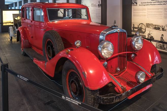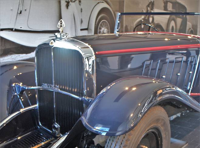 만신창이(?)가 된 DS8 체펠린 옆에는 붉은색의 마이바흐 DSH가 세워져 있습니다. 박물관 측 설명에 따르면 해당 모델은 1934년에 생산된 모델입니다. 마이바흐 DSH는 12기통 마이바흐만을 인정하던 당시 분위기 때문에 50대만 만들어진, 나름 귀한 모델입니다. 현재는 그중 단 3대만이 남아 있는데, 그 3대 중 한 대가 바로 이 모델이라고 했습니다.