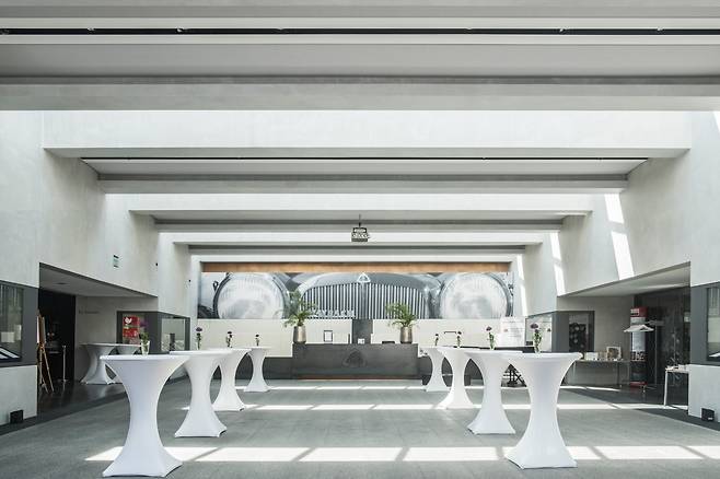 안마당을 지나 건물 안으로 들어서면 정면에 매표소 및 안내 데스크가 있습니다. 이곳을 바라보고 우측이 마이바흐 자동차 전시실이고, 좌측에는 결혼식이나 모임이 가능한 홀, 그리고 그 홀과 함께 익스프레스-베르크가 만들었던 자전거와 오토바이가 있는 작은 전시 공간이 마련돼 있습니다.