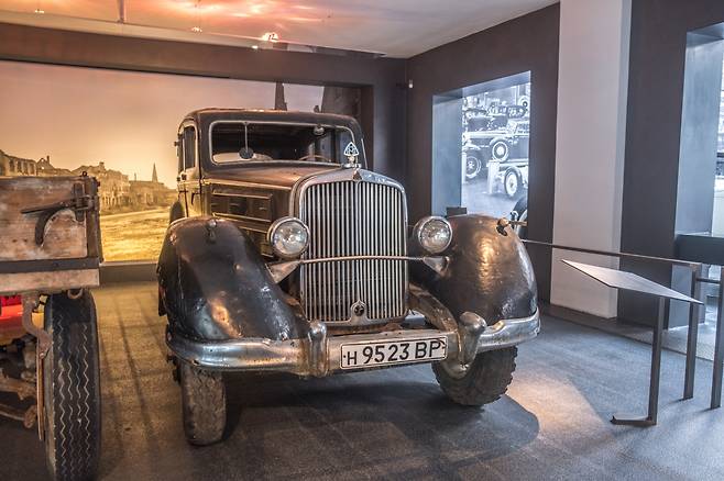 전시실로 들어서면 오래된 마이바흐 모델 하나가 방문객의 시선을 끕니다. 1930년대 후반쯤 만들어진 것으로 추정되는 DS8 체펠린은 도색이 다 벗겨진 채로 전시돼 있었죠. 전쟁 후 소련군이 가져가 버스로 사용이 되는 등, 매우 험하게 이용됐습니다.. 부품은 전부 러시아 것들로 교체가 되는 등, 몸체만 일부 원형을 유지한 채였고, 1991년까지 실제 사용이 된 것으로 박물관 측은 추측하고 있습니다.