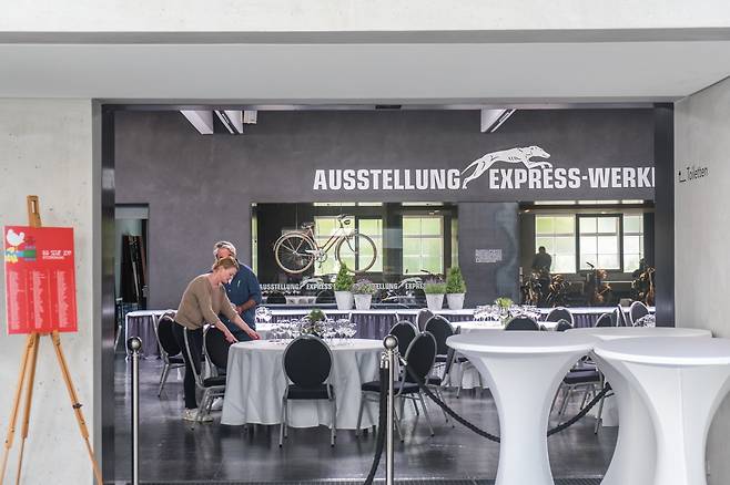 안마당을 지나 건물 안으로 들어서면 정면에 매표소 및 안내 데스크가 있습니다. 이곳을 바라보고 우측이 마이바흐 자동차 전시실이고, 좌측에는 결혼식이나 모임이 가능한 홀, 그리고 그 홀과 함께 익스프레스-베르크가 만들었던 자전거와 오토바이가 있는 작은 전시 공간이 마련돼 있습니다.
