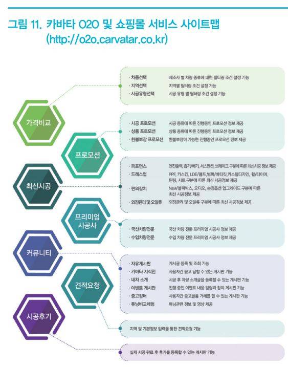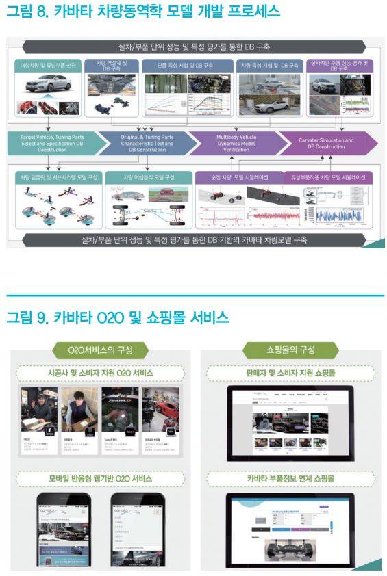 또한 본 사업에서는 카바타 서비스의 확대 적용을 위하여 소비자가 가상튜닝 환경에서 성능을 확인한 후 튜닝부품의 구매 및 장착을 위해 온라인 튜닝부품 공급자와 오프라인 튜닝부품 장착업체를 연결할 수 있는 카바타 O2O(Online to Offline) 및 쇼핑몰 서비스를 구축하였다. 본 서비스에서는 소비자가 구매 조건에 맞는 정보를 제공하기 위하여 전국 1,050개 업체와 제휴를 완료하였다.