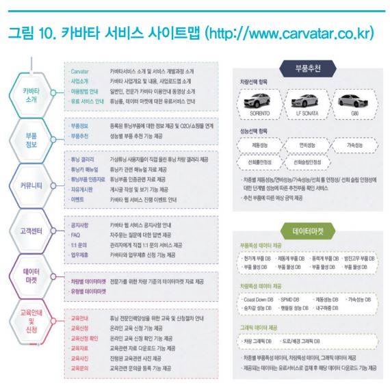 본 사업에서 제공하는 카바타 서비스는 일반인용과 전문가용 서비스로 세분화하여 구성하였다. 일반인용 서비스는 소비자가 튜닝부품을 구매할 때 가상환경에서 튜닝부품의 성능을 예측하여 튜닝부품 선택에 도움을 주기 위함이다. 전문가용 서비스는 튜닝 전문기업 및 튜닝 전문가의 튜닝부품 설계 시에 튜닝부품의 성능/내구성을 예측하여 튜닝부품 연구개발을 지원하기 위함이다.