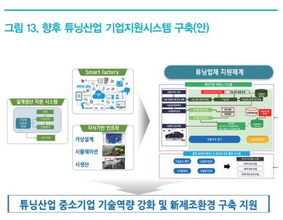 국내 튜닝산업은 자동차 분야의 고부가가치 산업으로 다양한 수익구조가 창출될 수 있는 가능성에도 불구하고 부정적인 인식과 법·규제로 인해 튜닝 선진국인 미국, 독일, 일본에 비해 시장규모는 협소한 실정이다. 이에 정부에서는 튜닝산업의 잠재성을 인식하고 국내 튜닝 산업 생태계를 구축하기 위해 2014년 경제관계 장관 회의에서 “자동차 튜닝산업 진흥방안”을 수립하여 산업통상자원부와 국토교통부를 중심으로 관련 사업을 추진 중에 있다.