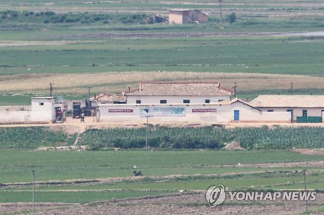 (인천=연합뉴스) 임화영 기자 = 19일 오후 인천 강화군 평화전망대에서 바라본 북한 황해북도 개풍군 마을의 모습. 2020.6.19