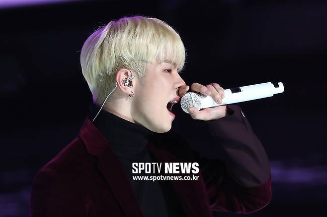 [스포티비뉴스=서울, 곽혜미 기자] 제 9회 가온차트 뮤직 어워즈가 8일 오후 서울 송파구 잠실실내체육관에서 열렸다. 엔플라잉 유회승이 열창하고 있다.