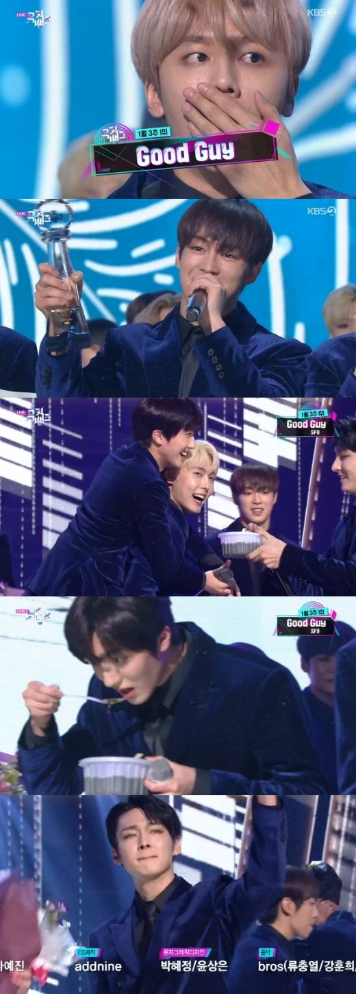 [마이데일리 = 김미리 기자] SF9이 멤버 찬희의 생일에 ‘뮤직뱅크’ 1위 트로피를 처음 거머쥐었다.
