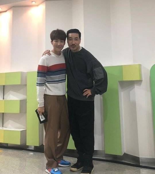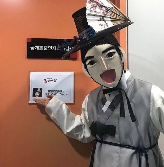 공개된 사진 속 하도권은 '민요' 복면과 '복면가왕' 큐카드를 들어 보이는 모습. 동문 카이와의 기념사진도 공개됐다.