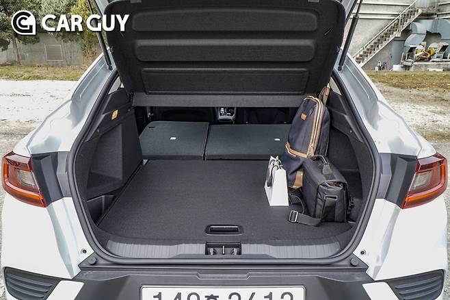 경쟁 모델 트렁크에 비해 용량의 차이는 크지 않다. 루프가 아래로 내려와 실사용에서 활용도는 떨어질 수 있다. 다만 트렁크 하단을 깊숙하게 파 바닥을 2단계로 높이를 조절할 수 있게 다듬었다. 부피가 큰 짐을 실어야 한다면 트렁크 아래 공간까지 활용하면 된다.