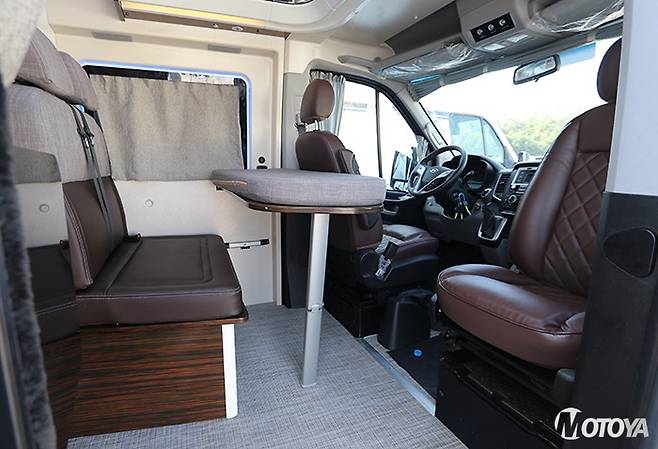 반면 국내서 만들어지고 있는 르노 마스터나 이베코 데일리 기반 캠핑카들의 경우, 회전식 1열 좌석이 전무한 실정이다. 이는 운전실의 공간을 활용할 여지가 전혀 없다는 것을 의미한다. 사실 상 죽은 공간이 되어버리는 셈이다. 국내서 만들어지는 르노 마스터 기반 캠핑카 대부분이 후방의 침대를 가변형으로 설계하거나 심한 경우에는 거실 공간이 유명무실해지는 근본적인 원인이 바로 회전식 1열 좌석의 부재에 있다. 이는 이베코 데일리 기반의 캠핑카들도 마찬가지다. 거실에 역방향 소파를 추가로 설치해야 하기 때문에 필연적으로 공간 효율이 떨어지게 된다.