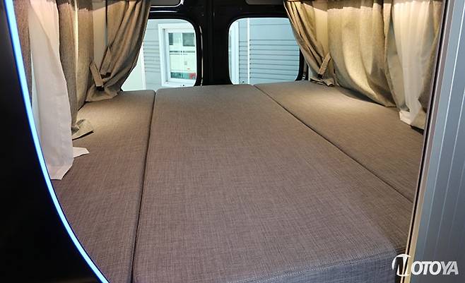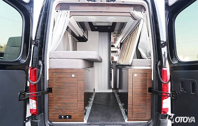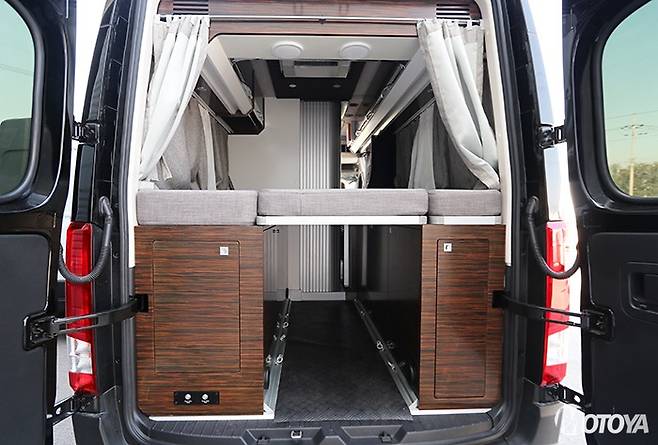 후방의 접이식 침대와 이를 이용한 중앙 적재공간은 여타의 캠핑카들이 갖지 못한 쏠라티 캠핑카만의 요소이자 쏠라티 캠픵카가 유럽식 캠퍼밴의 DNA를 품고 있음을 증명하는 요소다. 이러한 침대 구조는 이동시에는 차량의 적재용량을 충분히 활용할 수 있으면서도 정박시에는 침대 공간을 그대로 살릴 수 있어 유럽에서는 캠퍼밴형 차종을 중심으로 널리 사용되고 있는 방식이다.