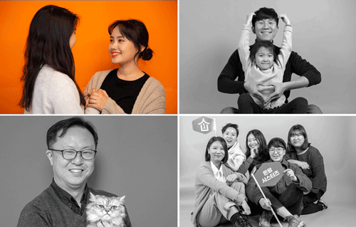 ※편집자 주: ‘가족사진’ 하면 어떤 모습이 떠오르시나요? 어머니와 아버지가 나란히 앉고 그 뒤로는 그들의 아들딸이 서서 정다운 미소를 짓고 있는 모습, 우리가 ‘정답’처럼 여겨 온 가족의 형태도 이런 것이겠죠. 하지만 여기, 조금 다른 가족이 있습니다. 부모와 자식이 함께하는 ‘4인 가족’ 이데올로기에서 벗어나 살아가는 이들이지요. 한국일보 뷰엔(View&) 팀이 ‘찾아가는 사진관’이 되어 혈연으로도, 법으로도 엮이지 않은 궤도 밖 ‘모던패밀리’의 모습을 담아봤습니다. 가족의 모습에 과연 ‘정답’이 있을까요?