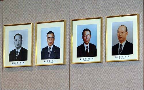| ▲ 국회 정보위의 국정원 국정감사가 21일 국가정보원에서 열렸다. 국정감사장에 걸려있는 역대 기관장의 사진중 8대 김재규 중정부장부터 칼라사진이다. 오른쪽끝은 10대 전두환 전대통령의 중정부장 시절. |