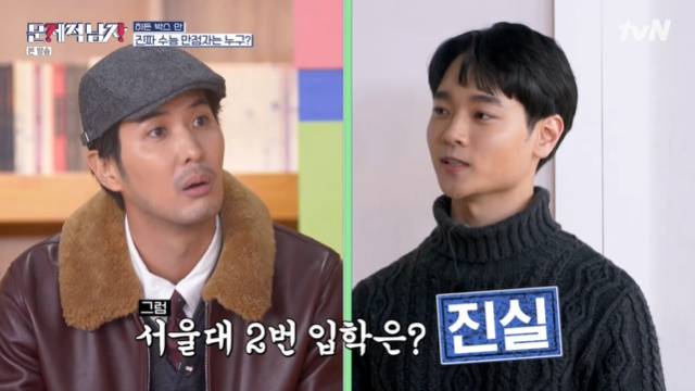 1번은 서울대를 두 번 입학한 수능 만점자고, 2번은 해외 명문대 출신으로 독학으로 수능을 만점 받았다고 주장했다. 3번은 꼴찌에서 수능 만점까지 성적이 상승했다고 말했고, 4번은 민사고 출신 수능 만점자라고 자신을 소개했다. 그때 주우재는 4번의 실루엣을 보고 민사고 박보검 이승효를 떠올렸고, 다른 멤버들도 확신에 차 4번을 놀렸다.