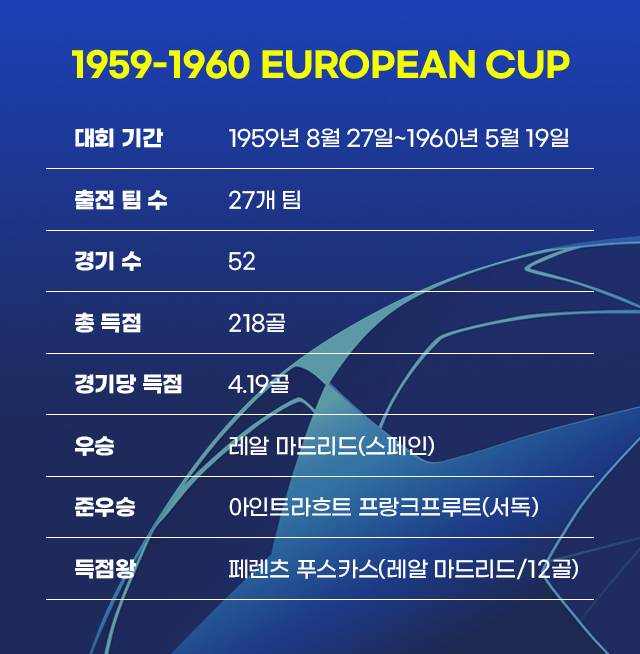 1959-1960 유로피언컵(現 UEFA 챔피언스리그)은 창설 이래 어느덧 다섯 번째 시즌을 맞았다. 인기 클럽들의 줄지은 참가로 대회를 향한 주목도는 더 높아졌고, 1959-1960시즌 역시 유럽 26개 리그의 챔피언들과 지난 유로피언컵 우승팀 레알 마드리드가 참여하며 더욱 풍성한 토너먼트를 구성했다.