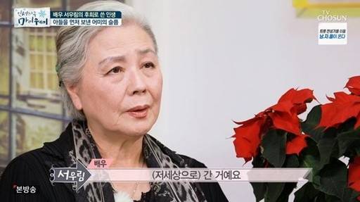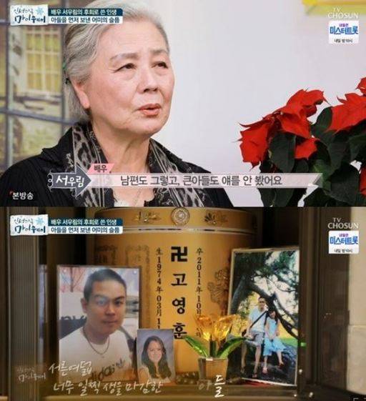 원로배우 서우림(맨 위 사진·78)이 안타깝게 세상을 등진 둘째 아들(위에서 두번째 사진)에 대한 그리움을 방송에서 토로했다.