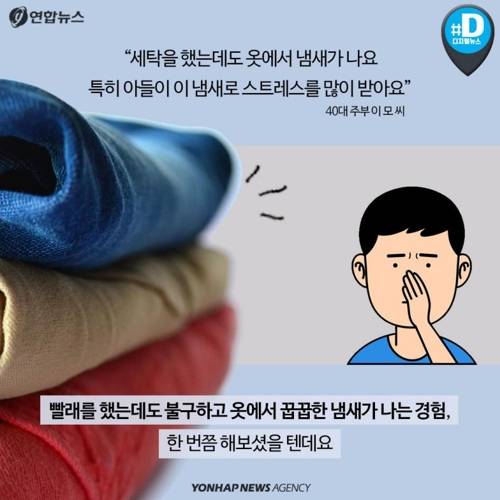 "세탁을 했는데도 옷에서 냄새가 나요. 특히 아들이 이 냄새로 스트레스를 많이 받아요."