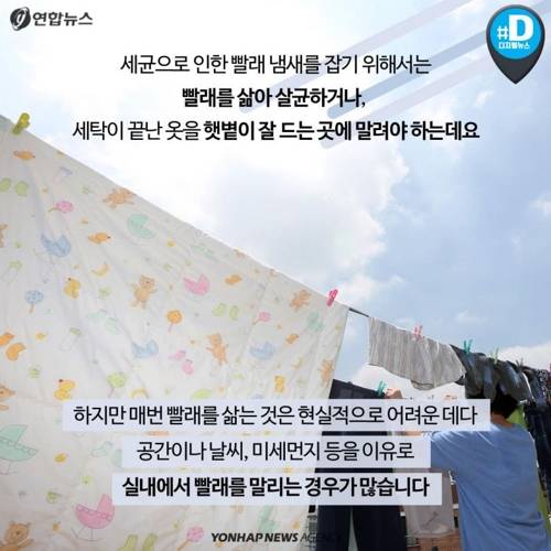 세균으로 인한 빨래 냄새를 잡기 위해서는 빨래를 삶아 살균하거나, 세탁이 끝난 옷을 햇볕이 잘 드는 곳에 말려야 하는데요.