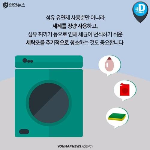 섬유 유연제 사용뿐만 아니라 세제를 정량 사용하고, 섬유 찌꺼기 등으로 인해 세균이 번식하기 쉬운 세탁조를 주기적으로 청소하는 것도 중요합니다.