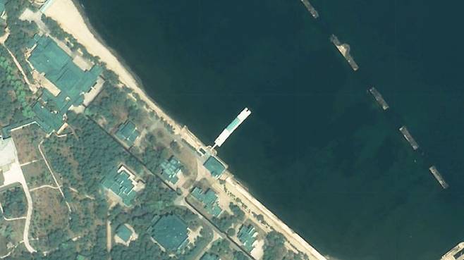 일례로 지난달 30일과 이달 2일 사이에 원산과 인근 섬인 대도 사이를 오가는 55m의 레저선이 별장의 정박시설에 위치한 모습이 위성에 찍힌 뒤 지난 27일까지 그곳에 있는 것으로 나타났습니다.