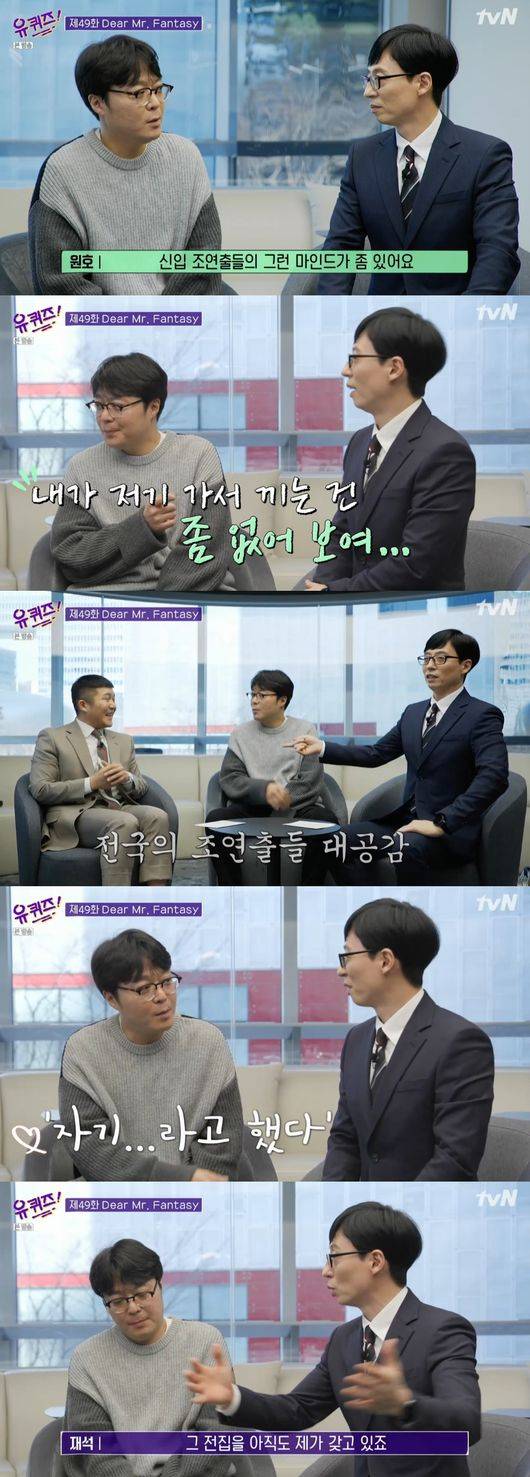 유재석 신인시절 당시 잠재력에 대해 물었다. 신원호 PD는 "너무 좋은 사람이란 건 다 느꼈다"면서 " '유퀴즈' 어느날 보는데 '자기야'란 호칭이 떠올라, 나에게도 처음 다가와준 말, 내게 처음 다가와준 연예인"이라고 했고, 유재석도 "그때 선물해준 만화책 전집도 다 가지고 있다"며 따뜻했던 추억을 회상했다.