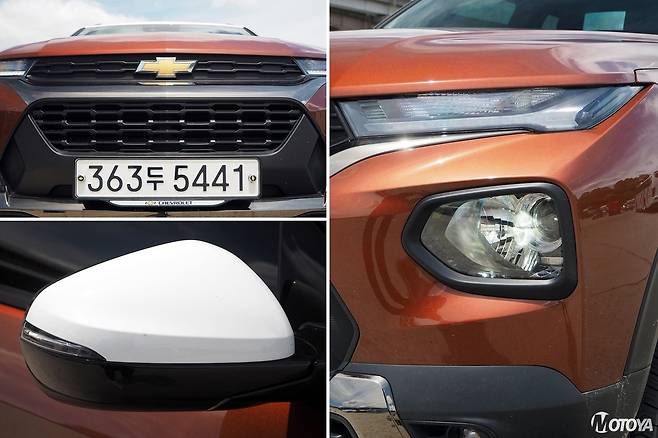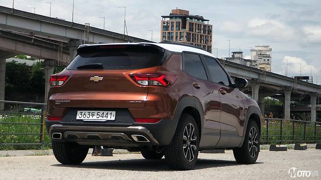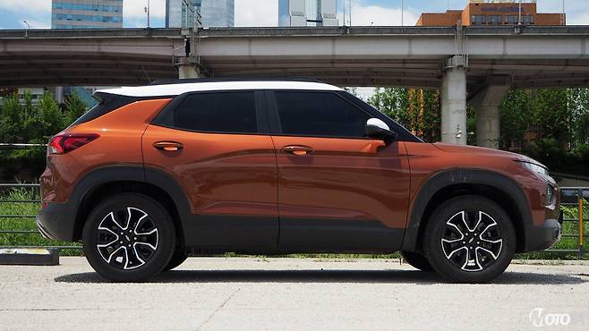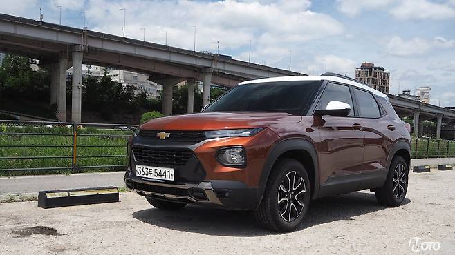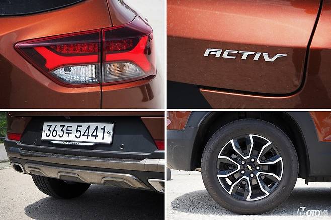 쉐보레 트레일블레이저는 기본형 외에 '액티브(Active)', 그리고 'RS'의 세 가지 외장 사양을 고를 수 있다. RS의 경우에는 고성능을 지향하는 스포티하고 속도감 있는 스타일을 강조하는 스타일을 가지며, 시승한 액티브의 경우에는 정통파 SUV에 가까운 스타일을 강조하는 구성이 특징이다. RS와 같은 중앙 메탈 바의 블랙크롬 피니시는 독특한 질감을 제공하며, 액티브 전용의 전후 범퍼 및 스키드 플레이트는 SUV들이 가지는 '강인함'의 이미지를 한껏 강조한다. 여기에 타이어는 일반 로드타이어가 아닌, SUV 전용의 사계절용 제품을 사용하고 있다.