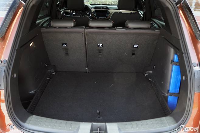 트레일블레이저는 기본 460리터의 트렁크 용량을 제공한다. 이는 주적인 셀토스에 비해 38리터 작은 것이며, 쌍용 티볼리와 얼추 비슷한 정도다. 덩치에 비해 트렁크 공간이 약간 부족하다는 점은 트레일블레이저 특유의 날렵한 C 필러 라인 때문이 아닐까 한다. 물론, 셀토스가 경쟁차종에 비해 트렁크가 유달리 큰 것도 한 몫 하지만 말이다.