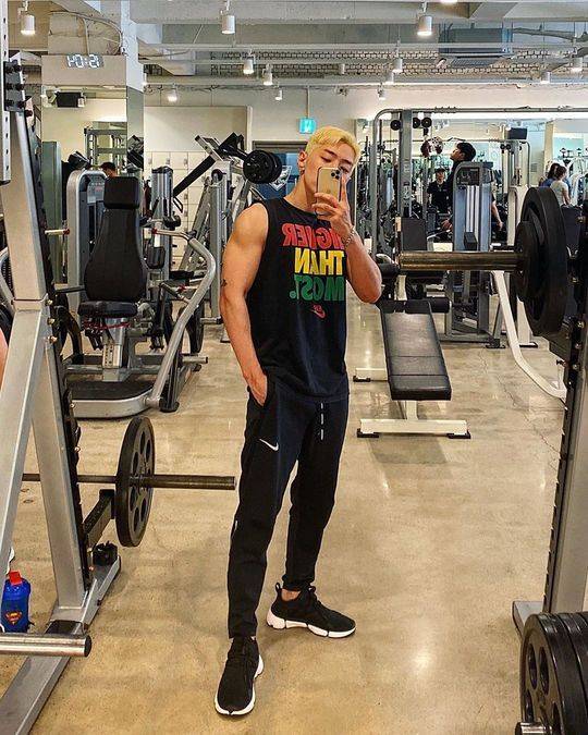 래퍼 그레이가 탄탄한 몸매를 뽐냈다.