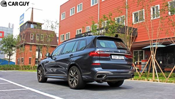 X7의 커다란 키드니 그릴은 엄청난 존재감을 내뿜는다. 그릴 크기가 너무 커 돼지코(?)와 비슷하다는 상반된 의견도 나온다. 후면 리어램프를 잇는 긴 크롬라인은 7시리즈가 연상돼 고급스러움을 더했다.