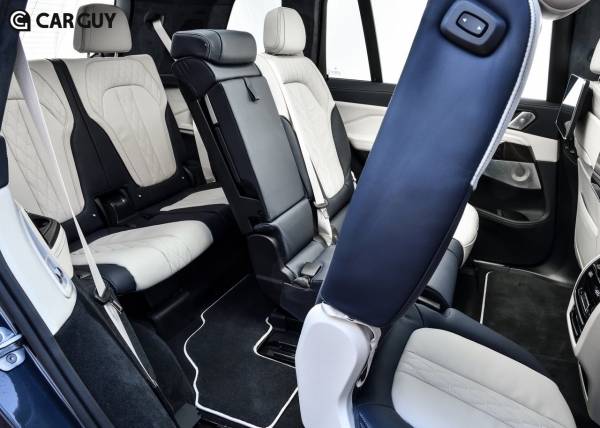 GLS 전장과 휠베이스가 X7보다 길다.GLS 3열이 비교적 더 여유있어 보인다. 3열을 쉽게 드나들 수 있게 2열을 전동으로 움직여주는 이지 엔트리 기능도 기본이다. 고급 럭셔리 SUV 임에도 2열 독립시트가 포함된 6인승 모델을 수입하지 않는 점은 아쉽다. 해외에는 6인승도 판매 중이다.