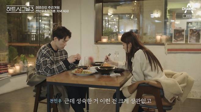 이날 천인우는 서민재를 앞에 두고 “어제 데이트 후 이가흔과 눈을 못 마주치겠다. 불편한 건 아니고 의식이 된다”고 솔직하게 털어놨다.