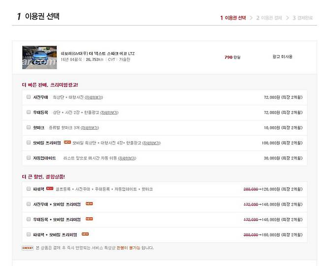 디테일한 차량 소개와 강조 문구, 무엇보다 내가 원하는 가격을 적을 수 있다는 것이 장점이다. 카가이 스파크는 처음 840만원으로 게시했으나 아무런 연락이 오지 않았다. 결국 가격을 야금야금 깎아 내릴 수 밖에 없었다. 790만원까지 내리자 연락이 오기 시작했다. 주로 개인보다는 현직 중고차 딜러에게 문의가 온다. “조금 깎고 파시라”는 식의 설득이 대부분이다.