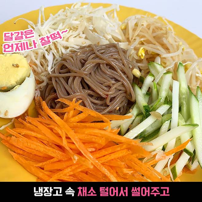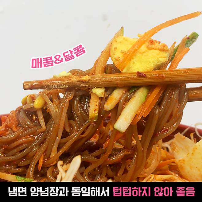 밥심이 극찬에 극찬을 했던 그 냉면 양념장과 동일한 양념이라 역시 텁텁한 맛이 없어서 질리지 않고 먹기가 좋고, 아삭한 야채랑 함께 먹으면 시원함이 배가 되어서 더욱 맛있게 즐기실 수 있을 듯요!